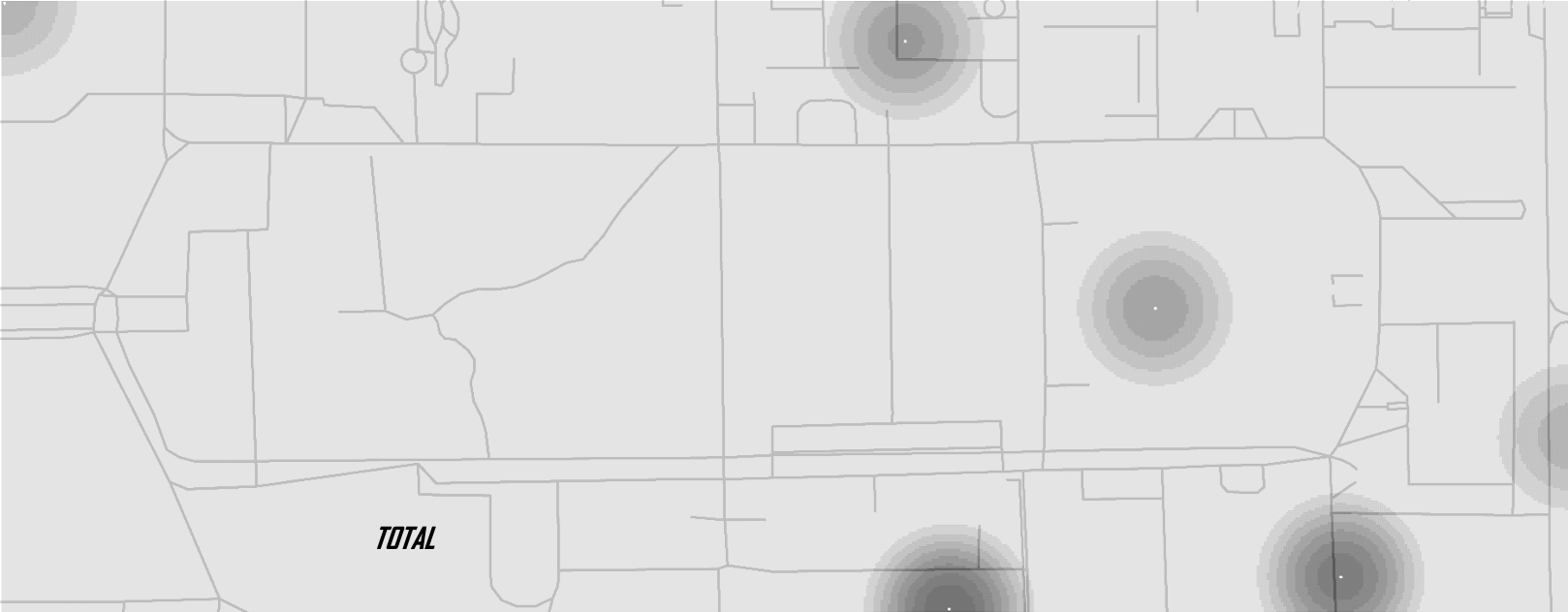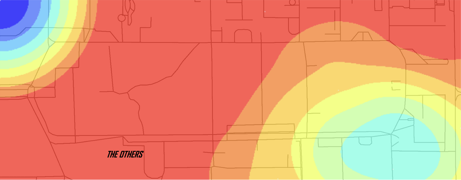 The data were interpreted using kernel density mapping to create a hotspot or heat map, and which by extension also doubles as a spectral presence.